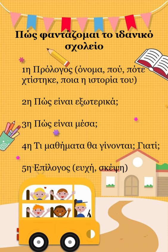 Έγιναν: Τετράδιο γραπτού λόγου, έκθεση με θέμα "Πώς φαντάζομαι το ιδανικό σχολείο"
