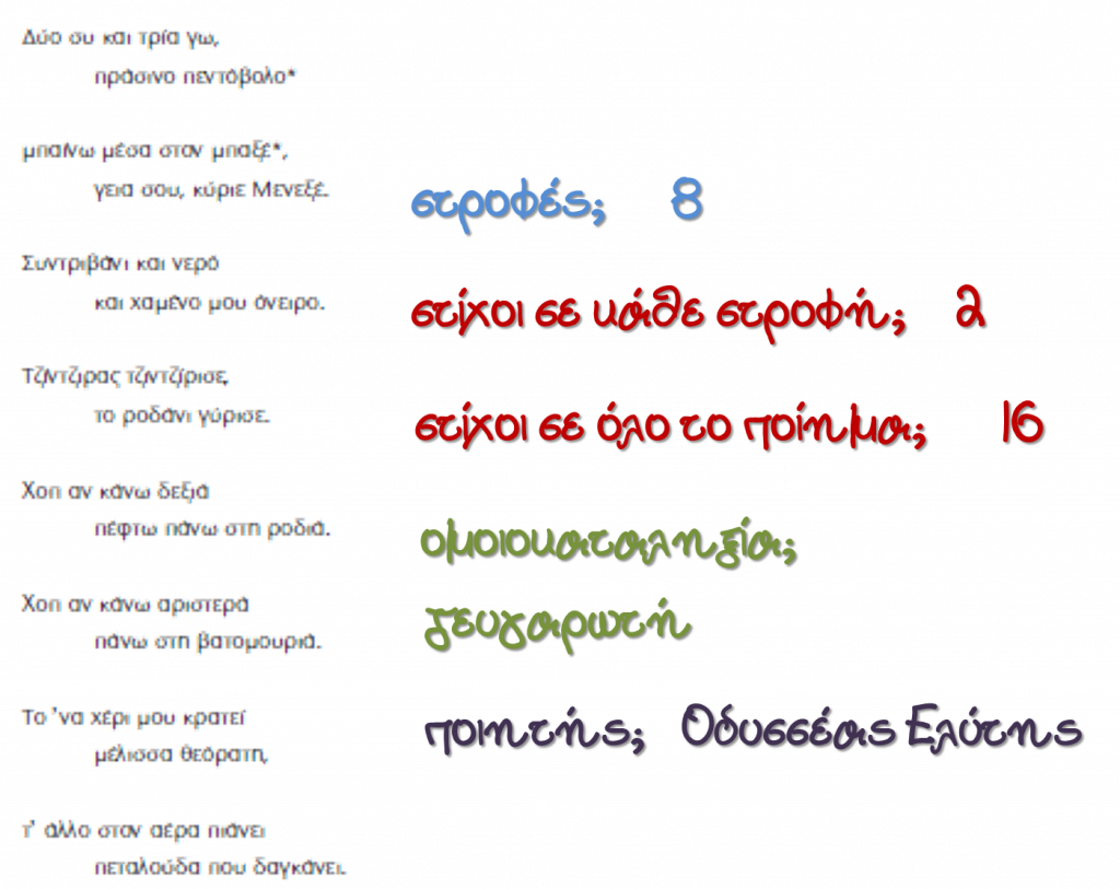 Σήμερα ξεκινήσαμε την 6η ενότητα στην οποία θα ασχοληθούμε με ιστορίες που έχουν πρωταγωνιστές παιδιά. Συγκεκριμένα διαβάσαμε ένα πολύ όμορφο ποίημα του "ποιητή του Αιγαίου" του Οδυσσέα Ελύτη με τίτλο "Κορίτσι" σελ. 8 και μελετήσαμε τα στοιχεία του: