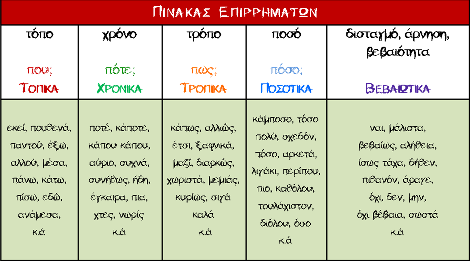 Στη συνέχεια, ολοκληρώσαμε τα επιρρήματα μιλώντας και για τις υπόλοιπες κατηγορίες.