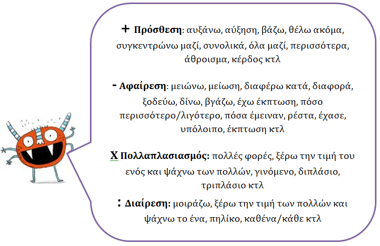 Έχουμε πλέον σχετικά μεγάλη άνεση στις πράξεις (κάθετες ή με το νου), γι' αυτό το επόμενο διάστημα θα βουτήξουμε ακόμα περισσότερο στην επίλυση προβλημάτων.