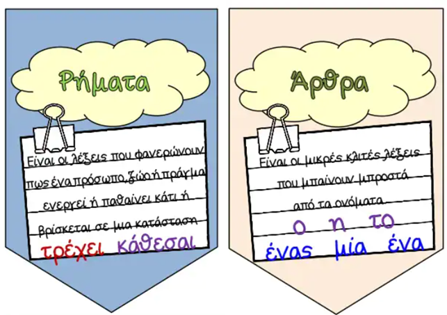 Στη συνέχεια ασχοληθήκαμε με τα μέρη του λόγου: Ρήμα, Άρθρο, Ουσιαστικό, Επίθετο.