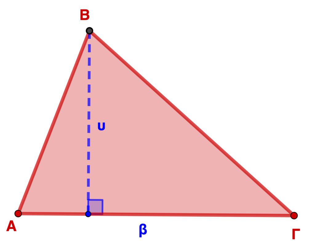 Άρα, στα τρίγωνα χρειάζεται να σχεδιάσουμε το ύψος από μία κορυφή στην απέναντι πλευρά (που είναι η βάση).