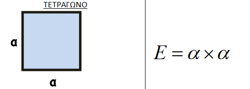 Ε = α x α (αφού η βάση και το ύψος είναι ίσα)