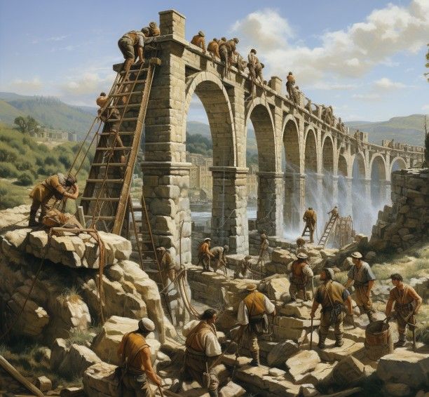 Η κατασκευή ενός ρωμαϊκού υδραγωγείου την περίοδο της pax romana (ρωμαϊκής ειρήνης). Με τα υδραγωγεία όλες οι μεγάλες πόλεις αποκτούν νερό αρκετό για τις ανάγκες τους.