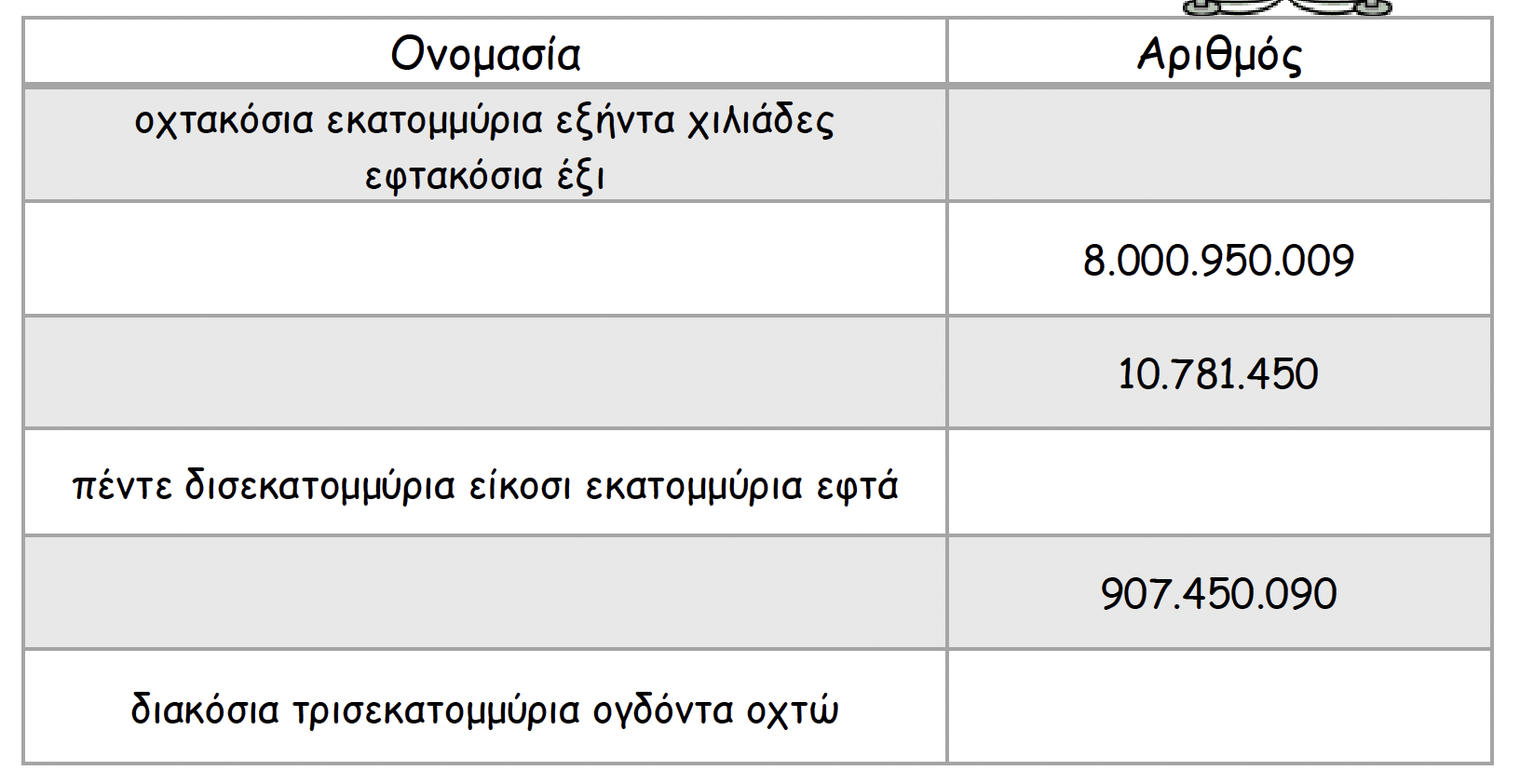 Πώς γράφονται τα 200 τρισεκατομμύρια 88; Καταρχήν, τα τρισεκατομμύρια είναι η αμέσως μεγαλύτερη μονάδα σε αξία από τα δισεκατομμύρια. Έτσι, έχουμε: χιλιάδες, εκατομμύρια, δισεκατομμύρια, τρισεκατομμύρια. Άρα, γράφουμε 200. --> η τελεία διαβάζεται "τρισεκατομμύρια". Συνεχίζουμε: