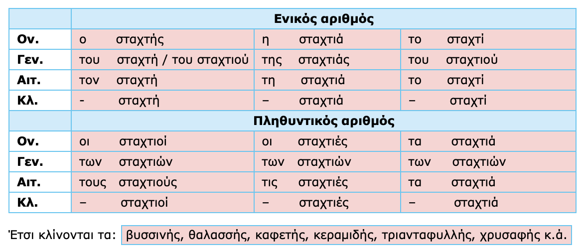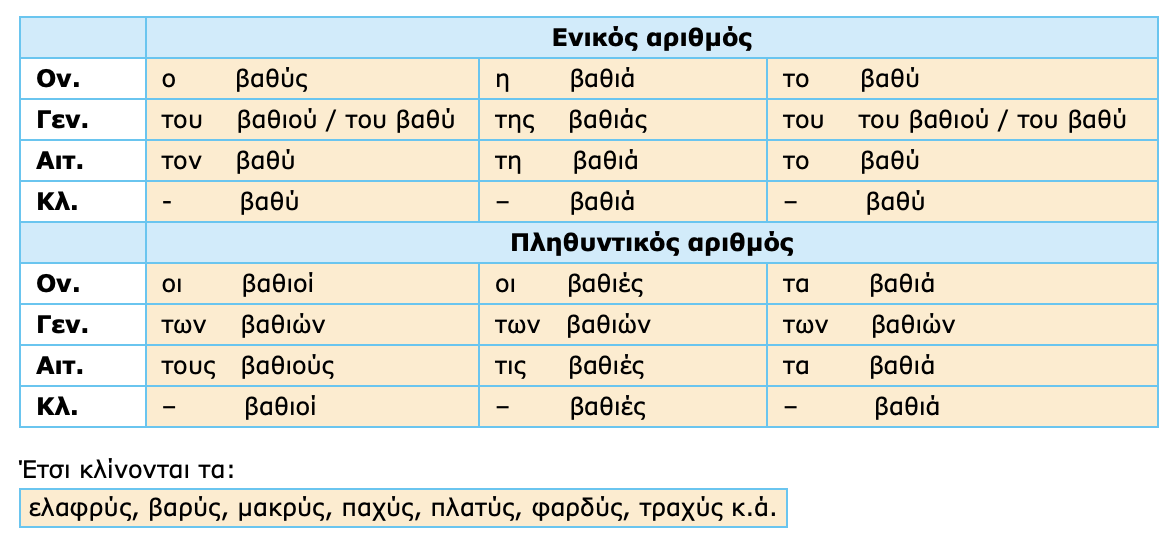 1. Επίθετα σε -ής -ιά -ί και -ύς -ιά -ύ