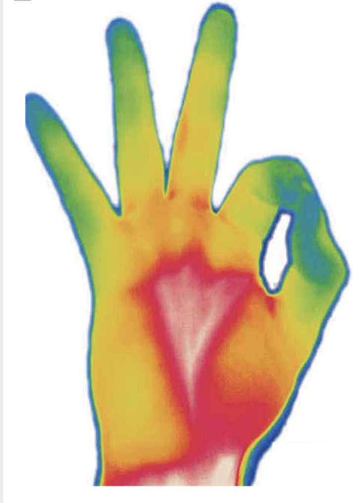Το διάγραμμα κάτω από την παλάμη δείχνει τη θερμοκρασία διαφορετικών σημείων του σώματος. Εκεί η απεικόνιση είναι διαφορετική: με κόκκινο αναπαρίστανται τα πιο θερμά σημεία και με μπλε ή πράσινο τα πιο ψυχρά. Έτσι, στο κέντρο της παλάμης μας η θερμοκρασία είναι μεγαλύτερη και στα άκρα μικρότερη.