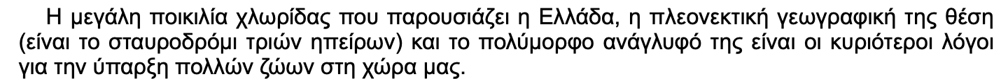 - Γιατί η χώρα μας έχει πλούσια χλωρίδα και πανίδα; (η απάντηση είναι στα παρακάτω αποσπάσματα)