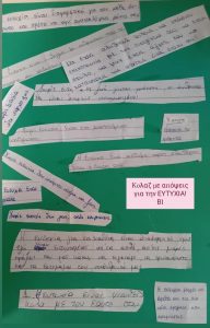 Επειτα τα παιδιά προχώρησαν σε σύντομο γραπτό σχολιασμό. Μερικά θέματα ήταν τα εξής: