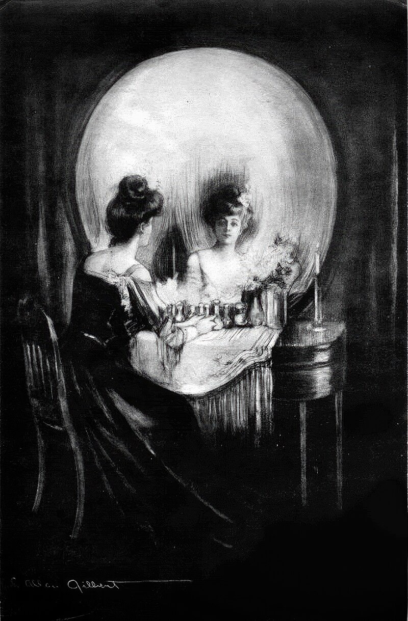 Η κοκέτα του πίνακα συμβάλει στη δημιουργία μιας νεκροκεφαλής. Η ματαιοδοξία της ανθρώπινης ομορφιάς που δεν έχει διάρκεια αλλά ένα, ίσως, τραγικό τέλος! Πίνακας του Charles Allan Gilbert (1892) με τίτλο, All is vanity!