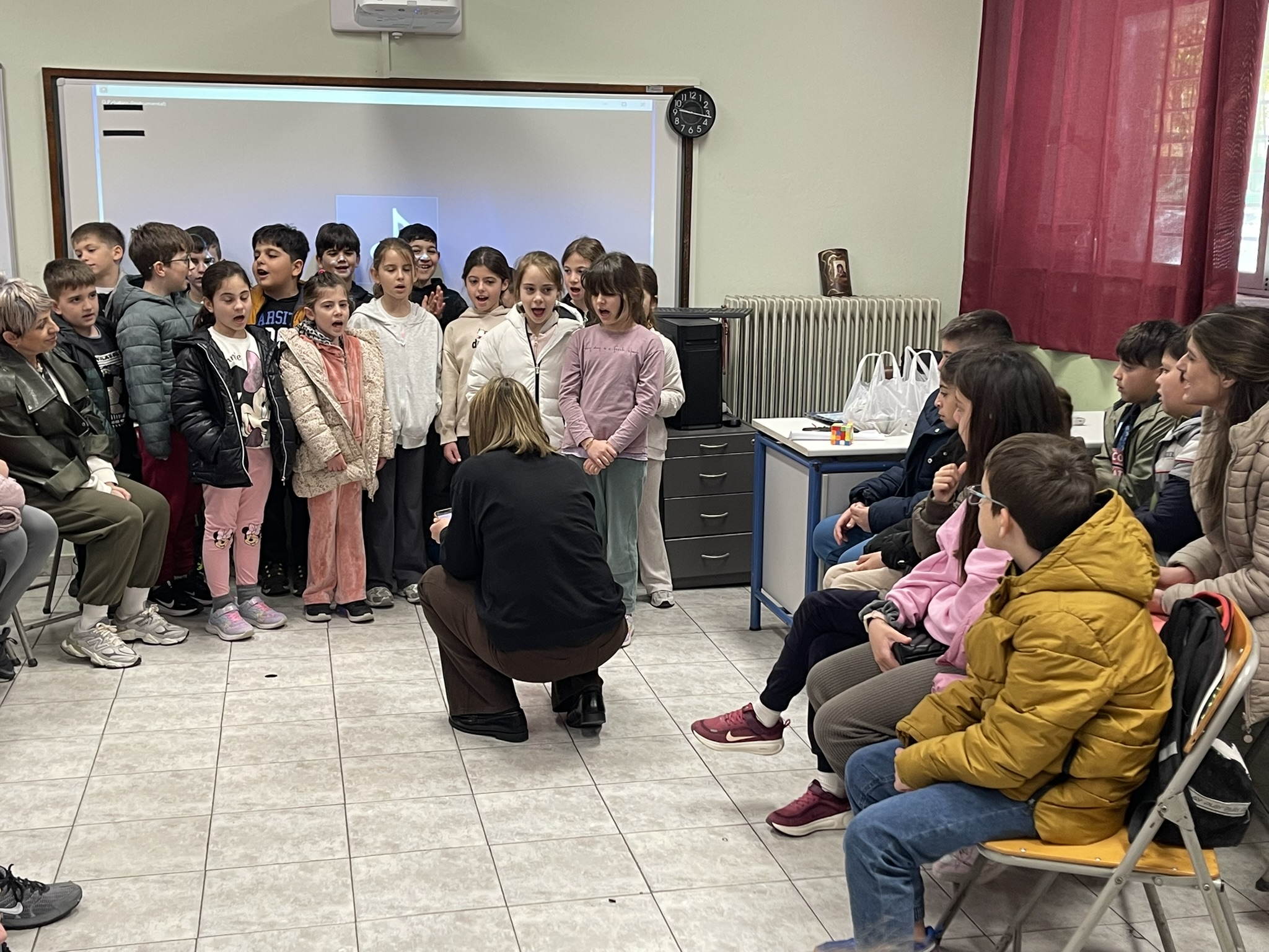 Η εκδήλωση ξεκίνησε με έναν ιδιαίτερα όμορφο και συγκινητικό τρόπο. Οι μαθητές της Β΄ Τάξης καλωσόρισαν τα παιδιά τραγουδώντας το γνωστό τραγούδι «Ο Παλιάτσος». Η παρουσίασή τους χάρισε ζωντάνια και χαρά στη συνάντηση και δημιούργησε από την αρχή μια γιορτινή ατμόσφαιρα. Ήταν πραγματικά πολύ ευχάριστο να ακούμε τους μικρούς μας συμμαθητές να τραγουδούν με ενθουσιασμό και να συμβάλλουν με τον δικό τους τρόπο σε αυτή την ξεχωριστή μέρα.