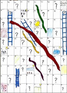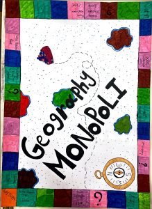 Στο δικό μας επιτραπέζιο όλες οι ερωτήσεις που φτιάξαμε στις κάρτες μας αφορούν τη Γεωγραφία (π.χ. Ποιο είναι το πιο ψηλό βουνό της Ελλάδας; Πόσα γεωγραφικά διαμερίσματα έχει η Ελλάδα; Πώς ονομάζεται ο χάρτης που δείχνει τα βουνά μιας χώρας;).