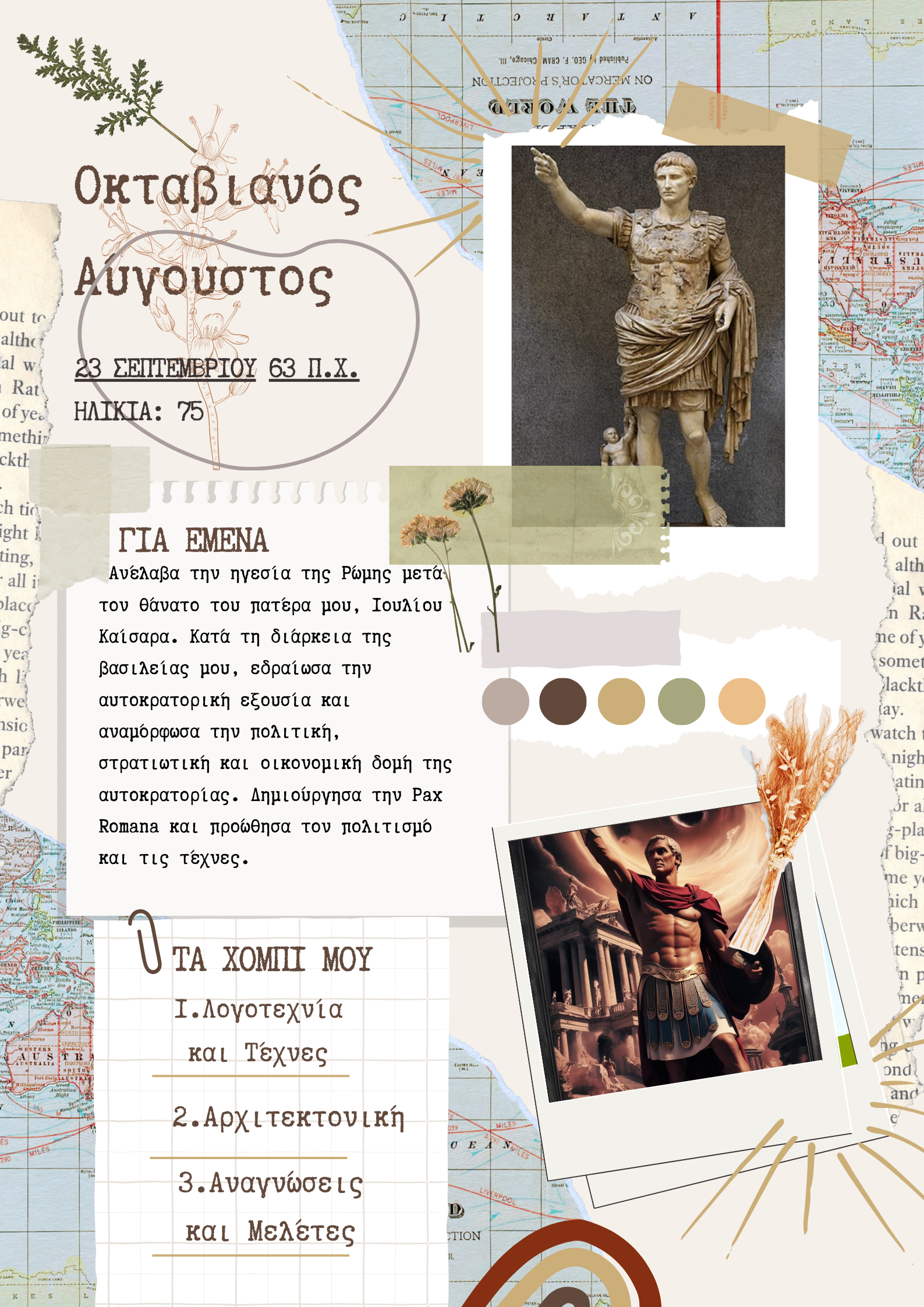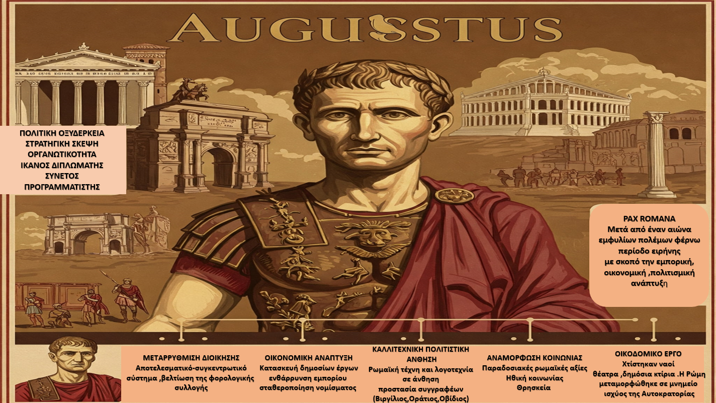 - Θέμα: Ο Αύγουστος, στην εποχή της τεχνητής νοημοσύνης, αξιοποιεί σύγχρονα τεχνολογικά μέσα για να προβάλλει την προσωπικότητα και το έργο του.