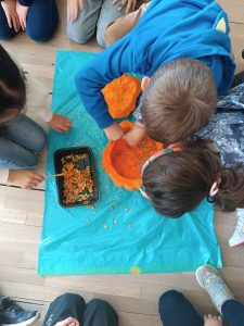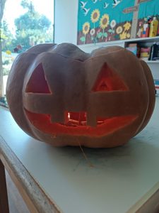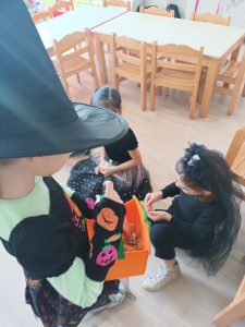 Τα παιδιά μας γιόρτασαν το Halloween . Τραγούδησαν για κολοκύθες , μπαλαρίνες φαντασματακια και μικρά τερατάκια. Άνοιξαν μια κολοκύθα και έβγαλαν τα σπορακια της για να φτιάξουν ενα  jack o’ lantern ! Ήρθαν μεταμφιεσμενοι και χόρεψαν το Happy Halloween και φυσικά έπαιξαν trick or treat .