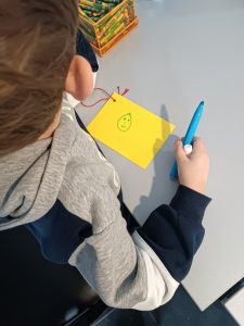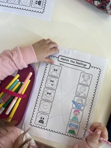 Μέσα από το θεατρικό παιχνίδι και με την βοήθεια της κούκλας των συναισθημάτων μιμούμαστε τον θυμό , την λύπη, την έκπληξη , την χαρά , τον φόβο . Στο πλαίσιο της διερεύνησης του επιπέδου ενσυναίσθησης των παιδιών δείχνουμε στα παιδιά εικόνες και εκείνα διαλέγουν το συναίσθημα που ταιριάζει.