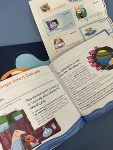 Τα παιδιά φεύγοντας πήραν μαζί τους δώρα αυτοκόλλητα και τα βιβλία του Σταγονούλη.