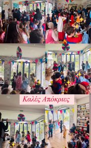 Το τρελό καρναβάλι ήρθε ξανά! Τα παιδιά μεταμφιέζονται, φτιάχνουν μάσκες με φτερά και πούλιες, μάσκες πειρατών Και φυσικά χαρταετούς για την καθαρά Δευτέρα! Το πάρτι μας ήταν ξέφρενο με πολλά παιχνίδια χορού , αυτοσχεδιασμούς, παιχνίδια μιμησεων, τις χορογραφίες της κάθε τάξης και φυσικά το αγαπημένο μας γαϊτανάκι!