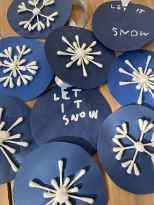 Με τη βοήθεια του δασκάλου των Αγγλικών μας φτιάξαμε snowflakes και στολίσαμε την τάξη ενώ τραγουδήσαμε το « Jingle bells» , το «Ring those Christmas bells » και το «we wish you a merry Christmas »