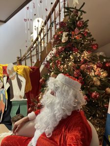 Απο την Χριστουγεννιάτικη εμπειρία δεν μπορεί να λείπει ο αγαπημένος μικρών και μεγάλων Άγιος Βασίλης . Επισκέφθηκε λοιπόν το σχολείο μας , μας είπε ιστορίες από τον χωριό του και μας μοίρασε δώρα. Τα παιδιά του έκαναν ερωτήσεις και χόρεψαν μαζί του το «Άι Βασίλη φέρε δώρα » ενώ στο τέλος πρόσφεραν καρότα για τους ταράνδους του . Ένας από αυτούς , ο Ρούντολφ , φεύγοντας για να μας ευχαριστήσει έστησε ένα κυνήγι θησαυρού με αινίγματα και δοκιμασίες για τα παιδιά μας .Στο τέλος της δοκιμασίας μας περίμεναν σοκολατένια γλυκά.