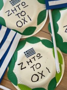 Τα παιδιά της Χαρούμενης Πολιτείας  είδαν εικόνες της εποχής και διάβασαν βιβλία σχετικά με την επέτειο της 28ης Οκτωβρίου . Μέσα από την μουσική της Βέμπο, δραματοποιήσαν τις γενναίες γυναίκες της εποχής και τους ήρωες φαντάρους . Τα κορίτσια μας χόρεψαν με λευκά μαντήλια αποχαιρετώντας τους «δικούς τους » στα τρένα και τα αγόρια μας βροντοφώναξαν το ΟΧΙ στα παγωμένα βουνά της Αλβανίας .