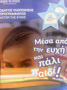 Τα παιδιά μας ολοκλήρωσαν με επιτυχία το πρόγραμμα του make a wish Το αστέρι της ευχής . Με βασικό στόχο την ανάπτυξη της ενσυναίσθησης  , ενημερώσαμε τα παιδιά μας για τον Νικόλα και τις δυσκολίες που αντιμετώπισε . Απαντήσαμε στις απορίες τους και τους «συστήσαμε » τις νεράιδες του make a wish . Λαμβάνοντας υπόψιν το γεγονός ότι η ενημέρωση και η ψυχοκοινωνική προετοιμασία τους, οδηγεί στην αποδοχή του παιδιού που νοσεί, εμπλέξαμε τα παιδιά μας στην διαδικασία . Με την σημαντική αρωγή των γονέων του σχολείου μας αγοράστηκαν αστέρια της ευχής στα οποία κάθε οικογένεια έγραψε τις ευχές της για το νέο έτος . Το αστέρι της ευχής έγινε ταχυδρόμος αγάπης φιλίας και αποδοχής .