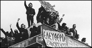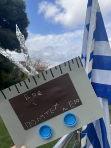 Διαβασαμε την «Ειρήνη» του Αριστοφάνη και την δραματοποιήσαμε. Τραγουδήσαμε : «Τα παιδιά ζωγραφίζουν στον τοίχο »,  «Ο δρόμος » και « Ένα το χελιδόνι ». Ακόμη  , φωνάξαμε  «Ψωμί, Παιδεία , Ελευθερία » και παίξαμε με τις λέξεις και τα γράμματα τους. Τέλος , φτιάξαμε το δικό μας ραδιόφωνο και αντιγράψαμε τη φράση «Εδώ Πολυτεχνείο »