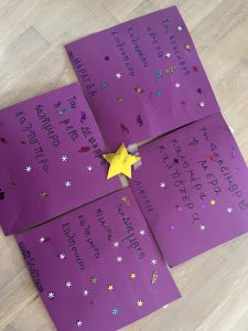 Με αφορμή αυτές τις μέρες αγάπης συζητήσαμε με τα παιδιά για την χαρά της προσφοράς και της βοήθειας , της αλληλεγγύης και της χαράς του να μοιράζεσαι .Τα παιδιά μας έκαναν ανταλλαγή δώρων μεταξύ τους και με την συνδρομή των γονέων του σχολείου μας συμμετείχαν στo πρόγραμμα του make a wish Αστέρι της ευχής