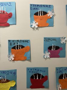 Στη συνέχεια , φτιάξαμε χειμωνιάτικες κατασκευές για να στολίσουμε την τάξη και αντιγράψαμε λέξεις του χειμώνα.