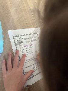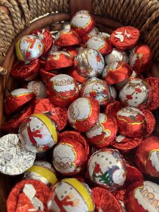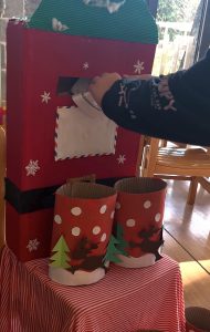 Απο την Χριστουγεννιάτικη εμπειρία δεν μπορεί να λείπει ο αγαπημένος μικρών και μεγάλων Άγιος Βασίλης . Επισκέφθηκε λοιπόν το σχολείο μας , μας είπε ιστορίες από τον χωριό του και μας μοίρασε δώρα. Τα παιδιά του έκαναν ερωτήσεις και χόρεψαν μαζί του το «Άι Βασίλη φέρε δώρα » ενώ στο τέλος πρόσφεραν καρότα για τους ταράνδους του . Ένας από αυτούς , ο Ρούντολφ , φεύγοντας για να μας ευχαριστήσει έστησε ένα κυνήγι θησαυρού με αινίγματα και δοκιμασίες για τα παιδιά μας .Στο τέλος της δοκιμασίας μας περίμεναν σοκολατένια γλυκά.