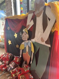Ηρθε η στιγμή του Χριστουγεννιάτικου θεατρικού και φέτος  επιλέξαμε να ζωντανέψουμε  «Τα Χριστούγεννα του Πινόκιο» , φυσικά προσαρμοσμένα στις δυνατότητες των παιδιών της ηλικίας μας . Τα παιδιά του προνηπίου μεταμορφώθηκαν σε Τσεπετο και όμορφες μαριονέτες και το νηπιαγωγείο κράτησε τους ρόλους του Πινόκιο και της μπλε νεράιδας . Είπανε ποιήματα γραμμένα από εμάς και παρουσίασαν με συνοδεία μουσικής την ιστορία .