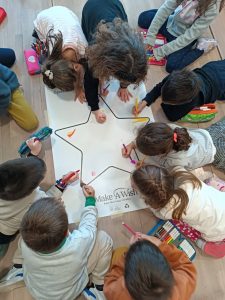 Τα παιδιά μας ολοκλήρωσαν με επιτυχία το πρόγραμμα του make a wish Το αστέρι της ευχής . Με βασικό στόχο την ανάπτυξη της ενσυναίσθησης  , ενημερώσαμε τα παιδιά μας για τον Νικόλα και τις δυσκολίες που αντιμετώπισε . Απαντήσαμε στις απορίες τους και τους «συστήσαμε » τις νεράιδες του make a wish . Λαμβάνοντας υπόψιν το γεγονός ότι η ενημέρωση και η ψυχοκοινωνική προετοιμασία τους, οδηγεί στην αποδοχή του παιδιού που νοσεί, εμπλέξαμε τα παιδιά μας στην διαδικασία . Με την σημαντική αρωγή των γονέων του σχολείου μας αγοράστηκαν αστέρια της ευχής στα οποία κάθε οικογένεια έγραψε τις ευχές της για το νέο έτος . Το αστέρι της ευχής έγινε ταχυδρόμος αγάπης φιλίας και αποδοχής .