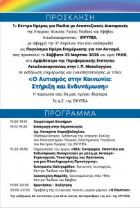 Κέντρο Ημέρας για Παιδιά με Αναπτυξιακές Διαταραχές της Εταιρίας Ψυχικής Υγείας Παιδιού και Εφήβου Αιτωλοακαρνανίας-ΕΨΥΠΕΑ: Εκδήλωση για την Παγκόσμια Ημέρα Ενημέρωσης για τον Αυτισμό