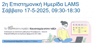 Το ΚΕ.Δ.Α.Σ.Υ. Αιτωλ/νίας παρακολούθησε τις Εργασίες Ημερίδας “Το LAMS στην Τάξη: Καινοτομία στην πράξη” (Σάββατο 17 Μαΐου 2025 – Πάτρα και διαδικτυακά)