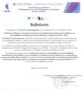 Δελτίο τύπου σχετικά με την εκδήλωση ανάδειξης του εκπαιδευτικού έργου της Π.Δ.Ε. Δυτικής Ελλάδας για το σχολικό έτος 2024–2025