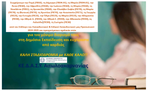 Ευχές για Καλή Σταδιοδρομία από το ΚΕ.Δ.Α.Σ.Υ. Αιτωλ/νίας! Πρόσκληση Υ.ΠΑΙ.Θ.Α. σε ορκωμοσία και ανάληψη υπηρεσίας