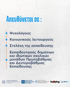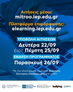 Αρχίζει στις 26/9 η 4η φάση της επιμόρφωσης των εκπαιδευτικών για τη ενδοσχολική βία και τον εκφοβισμό που υλοποιείται από το ΥΠΑΙΘΑ, το ΙΕΠ και το ΕΚΠΑ – Από τη Δευτέρα 22/9 η πρόσκληση για αιτήσεις συμμετοχής στο πρόγραμμα