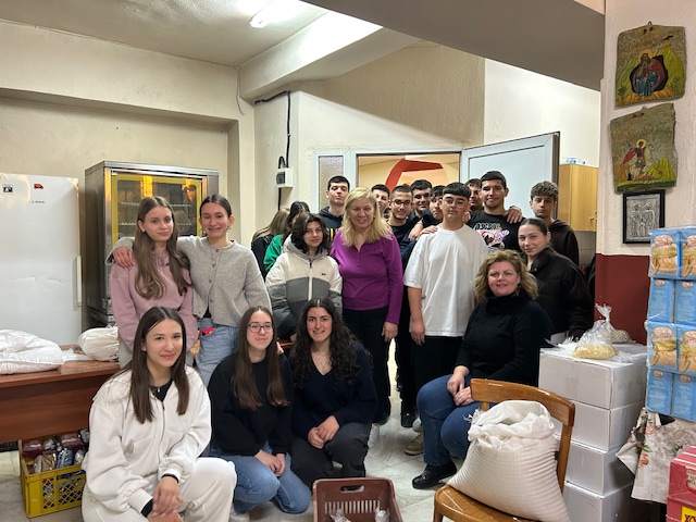 Οι μαθητές και οι μαθήτριες του τμήματος Α3 συνέβαλαν στη δημιουργία αλυσίδας αλληλεγγύης ενισχύοντας το έργο της ενορίας μας, του Ιερού Ναού Αγίων Τριών Ιεραρχών Ευόσμου. Την Τετάρτη 9 Απριλίου 2025, πέρασαν το πρωινό τους στη Βασιλειάδα. Ενημερώθηκαν για τις δράσεις, κοινωνικό φροντιστήριο, προσφορά ρουχισμού και δεμάτων τροφίμων. Αφού γνώρισαν τον χώρο και πέρασαν ευχάριστες στιγμές παίζοντας ομαδικά παιχνίδια που προσφέρει ο Ναός σε όποιο παιδί και νέο/α θα ήθελε να περάσει χρόνο, προσέφεραν τη βοήθειά τους στην προετοιμασία των δεμάτων που οι εθελοντές προσφέρουν κάθε Πάσχα σε συνανθρώπους μας. Η δράση έγινε στο πλαίσιο του Ενεργού πολίτη. Προηγήθηκε ενημέρωση των μαθητών/τριών για τους ανθρώπους που αντιμετωπίζουν προβλήματα επιβίωσης και αναζητήθηκαν τα αίτια της φτώχειας στη χώρα μας και στο κόσμο αλλά και τρόποι αντιμετώπισής τους.