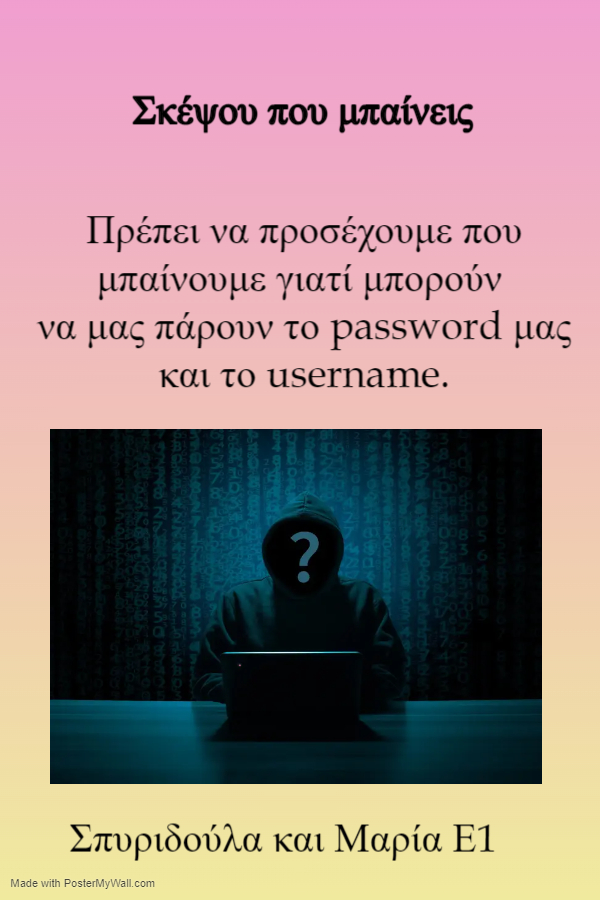 Οι μαθητές δημιούργησαν τις αφίσες τους με θέμα την ασφάλεια στο διαδίκτυο. Η κάθε ομάδα επίλεξε μια κατηγορία και μπορείτε να δείτε τις αφίσες τους