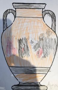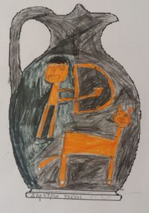 Ο Ηρακλής φέρνει τον Κέρβερο στον Ευρυσθέα, ο οποίος κρύβεται στο πιθάρι. |