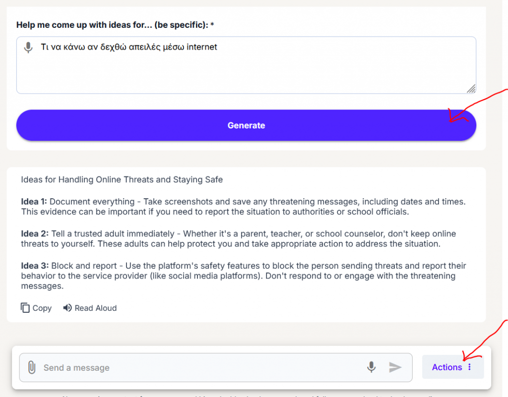 Μετά γράφω μία πρόταση σχετικά με μια συμβουλή για το διαδίκτυο και πατάω Generate