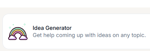 Κάνω κλικ παρακάτω και επιλέγω το εργαλείο Idea Generator