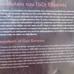 Μαυσωλείο Γαζή Εβρενός: Η περιήγηση ξεκινά από αυτό το μνημείο, το οποίο συνδέεται με τον ιδρυτή της πόλης και την ίδρυσή της. Οι μαθητές μαθαίνουν για το τοπίο του 14ου αιώνα και το ιστορικό πλαίσιο της εποχής. Επίσης, περιγράφεται το μνημείο και οι φάσεις της ιστορίας του.