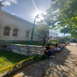 Ναός Αγίου Γεωργίου: Οι μαθητές εισέρχονται στο πάρκο και παρατηρούν εξωτερικά τον σύγχρονο ναό. Γίνεται αναφορά στις τρεις φάσεις της ιστορίας του και στη σύνδεσή του με την εγκατάσταση των προσφύγων