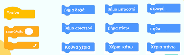 Φτιάξτε τα δικά σας μικρά προγράμματα- χορογραφίες με τις παρακάτω εντολές.