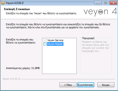 Αποεπιλέγουμε το “Veyon master” και συνεχίζουμε την εγκατάσταση.