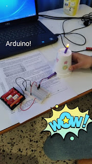 Δημιουργήσαμε ένα φωτιστικό, ουσιαστικά είναι ένα απλό κύκλωμα με led και αντίσταση. Χρησιμοποιήσαμε χάρτινα ποτήρια, καλαμάκια χοντρά και έτσι κάναμε μια απλή κατασκευή ενός πορτατίφ.