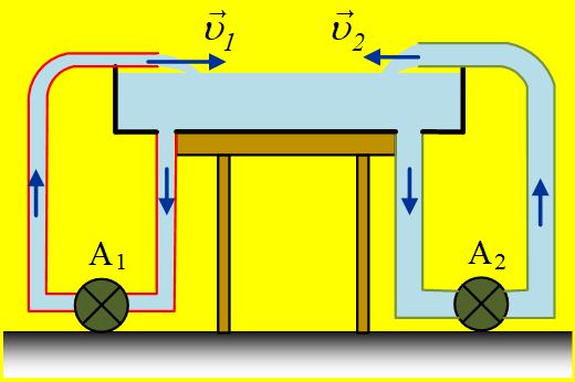 Στο σχήμα βλέπετε δύο αντλίες οι οποίες «ανακυκλώνουν» το νερό που βρίσκεται σε δοχείο, σε ύψος Η από το έδαφος. Η πρώτη αντλία μεταφέρει το νερό μέσω σωλήνα διατομής S1, ενώ η δεύτερη μέσω σωλήνα διπλάσιας διατομής S2=2S1Και οι δύο αντλίες βρίσκονται στο έδαφος. Όταν λειτουργούν και οι δύο, στον ίδιο χρόνο t1, μεταφέρουν νερό όγκου 1m3 η καθεμιά.