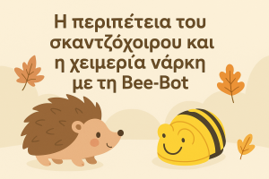 Μετά την ανάγνωση του παραμυθιού «Αουτς! Χειμερία νάρκη» της R. Scamell, τα παιδιά καλούνται να βοηθήσουν τον σκαντζόχοιρο να φτάσει στα αντικείμενα που συναντά στην ιστορία, προγραμματίζοντας τη Bee-Bot να ακολουθεί τη σωστή διαδρομή επάνω στο ειδικά διαμορφωμένο ταμπλό. Κάθε ομάδα αναλαμβάνει ένα σημείο της αφήγησης και σχεδιάζει βήμα-βήμα τις εντολές της, τις καταγράφει και εκτελεί τον προγραμματισμό.