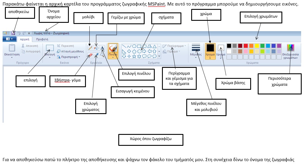Γνωριμία με το πρόγραμμα της Ζωγραφικής των Windows (MS Paint).