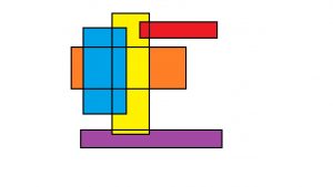 - Σχεδιάστε ορθογώνια, κάθετα και οριζόντια, και χρωματίστε τα με το εργαλείο του κουβά (γέμισμα) με χρώματα της επιλογής σας, όπως παρακάτω: